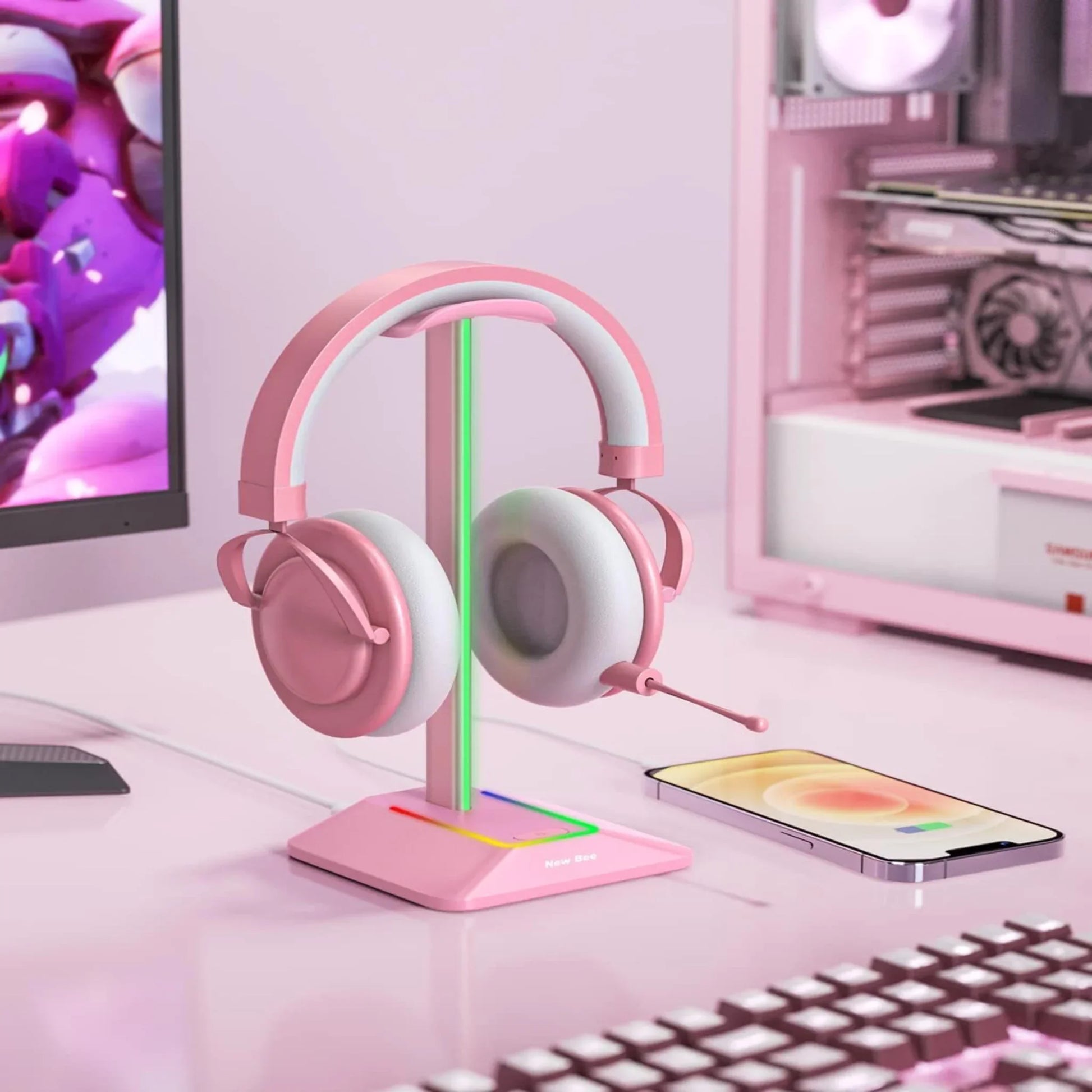 Illumina la tua postazione con 7 modalità RGB. Dotato di porte USB-C e USB per ricarica e trasferimento dati. Struttura in alluminio stabile con base antiscivolo e protezione in gomma TPU per le cuffie. Compatibile con tutte le cuffie da gaming. Garanzia 36 mesi e supporto clienti dedicato.